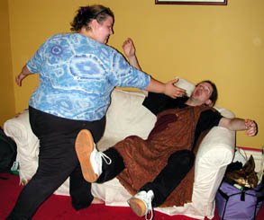 Hal explains to Dayna why they shouldn't actually kill the Sarrans.