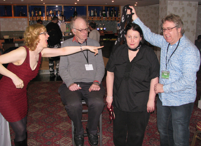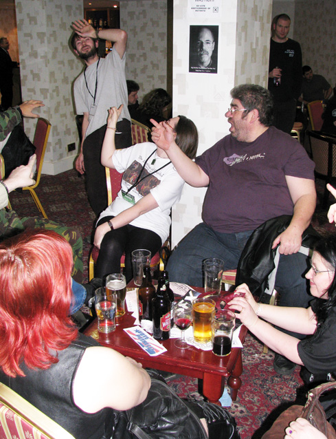he realises, to his amusement, that they were the two with whom he’d just been talking.