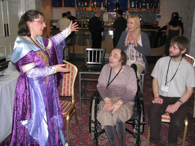 Soolin pretends to faint to distract everyone while Vila (bottom right) steals the diadem.